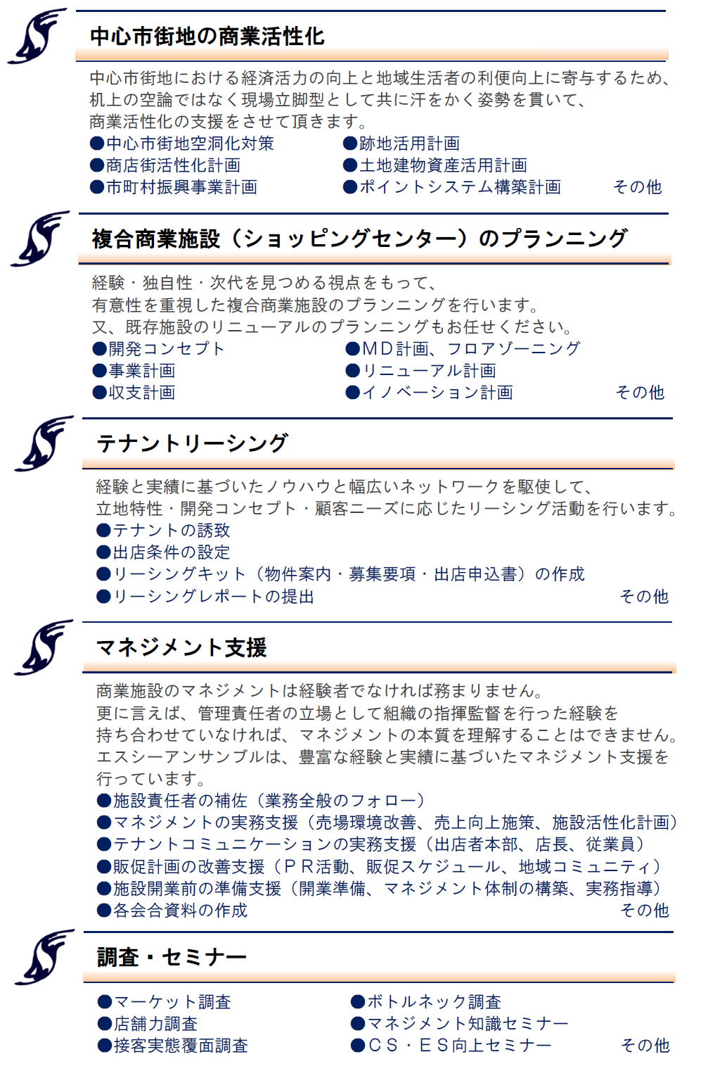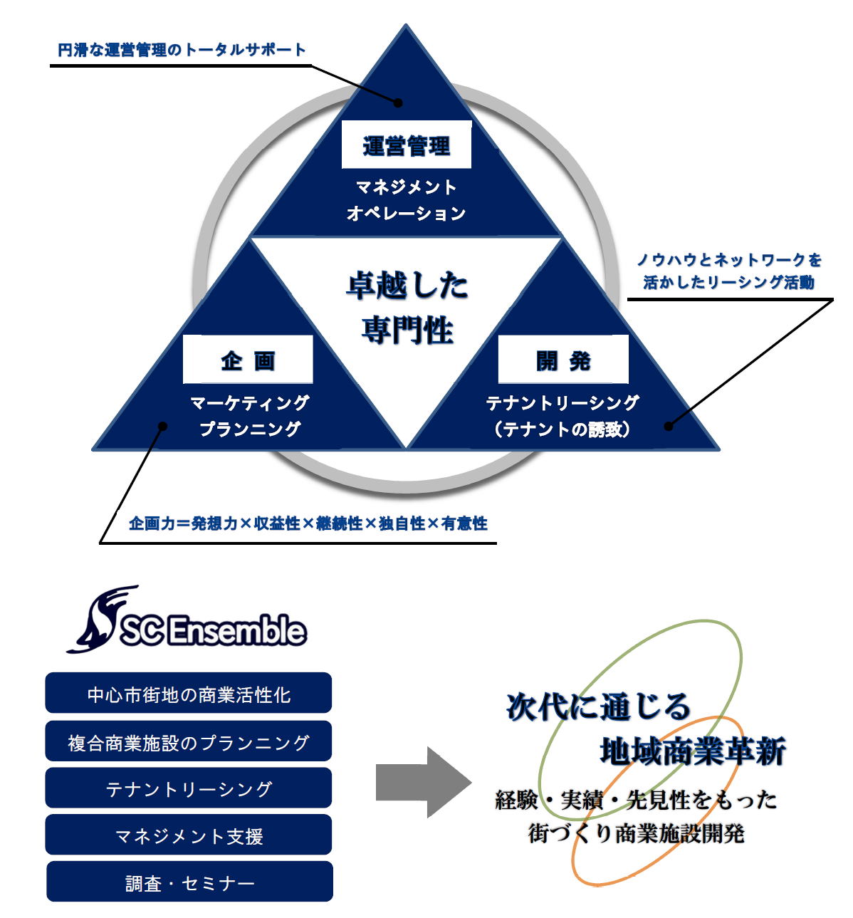 エスシーアンサンブルは、中心市街地の商業活性化と複合商業施設の企画・開発・マネジメント支援を行っています。